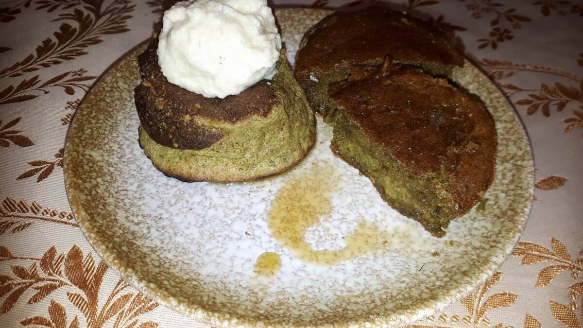 Блины-суфле из чая матча с муссом из груши наши