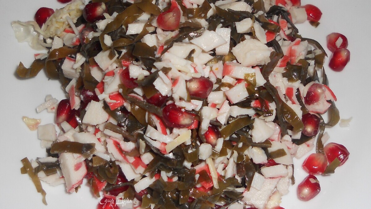Салат из морской капусты, крабовых палочек и граната