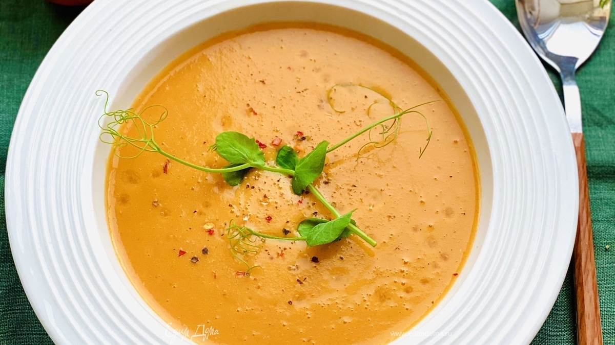 - Шаг 3Заливаем овощи с крупой кипятком, солим, перчим и варим 25 мин. Затем пюрируем все блендером и подаем, добавив несколько капель лимона и черный перец.