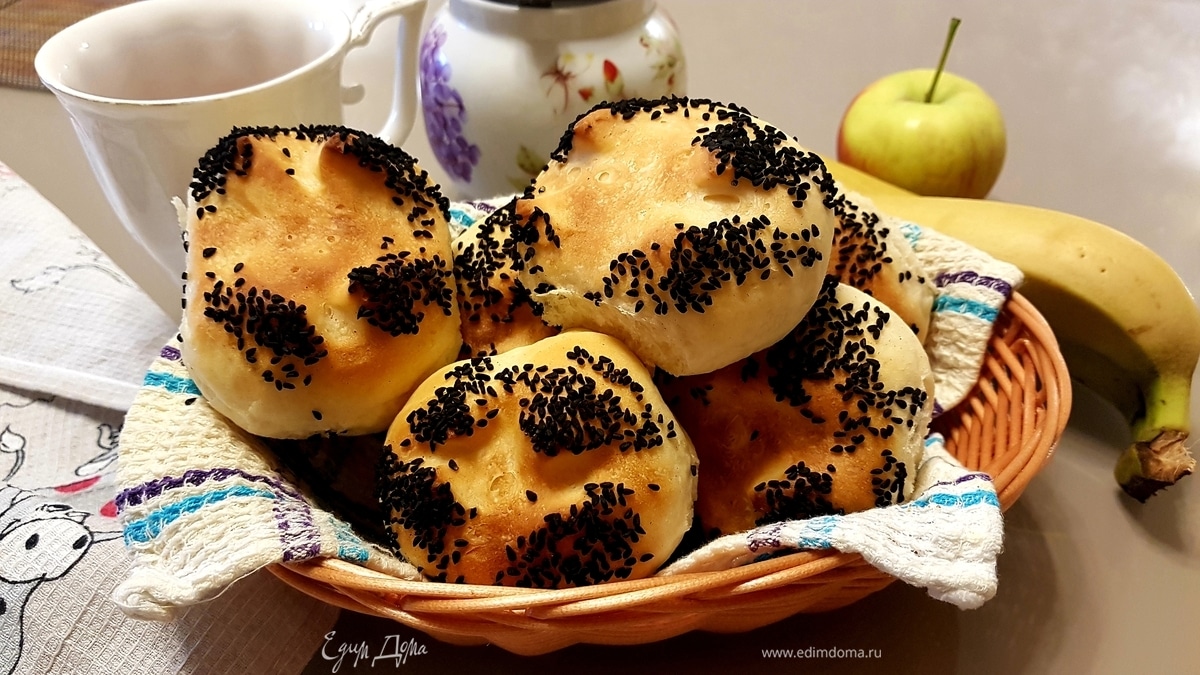 Яйцо слегка взбить. Каждую булочку сначала окунуть в яйцо, а потом — кунжут. Ножницами сделать крестообразные надрезы. накрыть булочки полотенцем и оставить на 40 минут. - Шаг 6