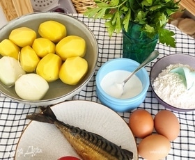 Картофель и лук очистить, положить на пару минут в холодную воду. Подготовить все ингредиенты.
