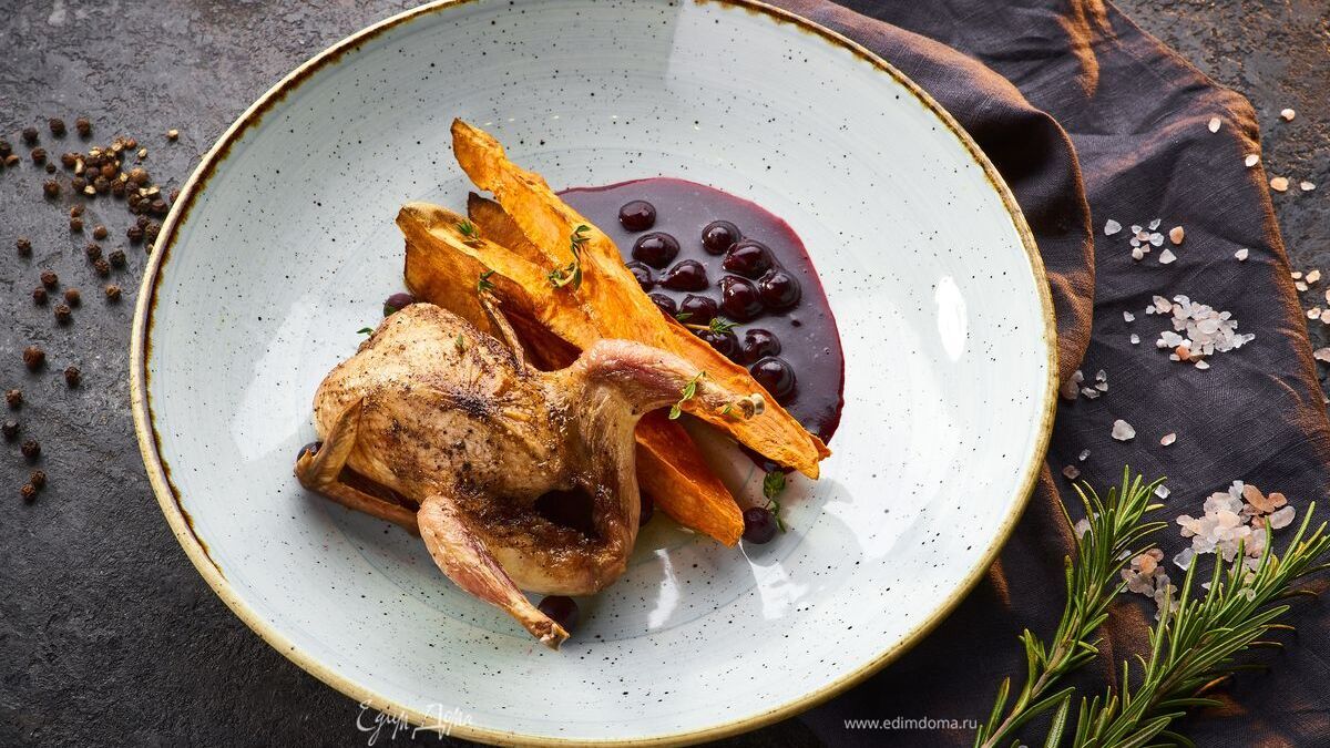 Фермерские перепелки с маркетплейса «Свое Родное» с черносмородиновым соусом и запеченным бататом станут украшением любого стола!