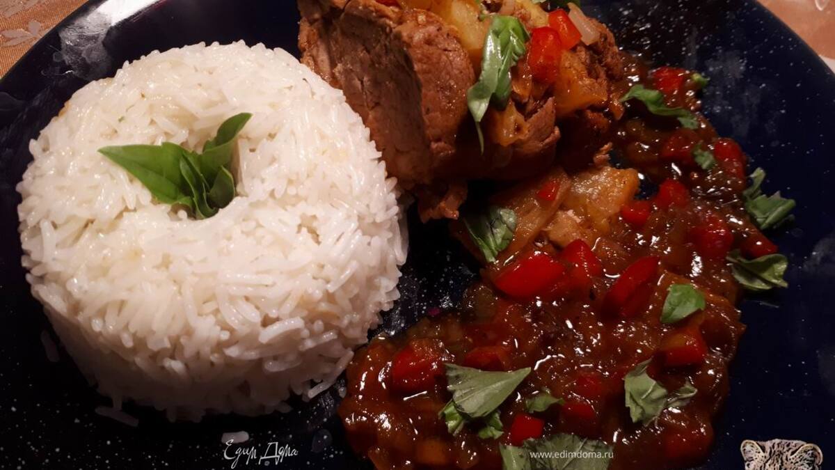 Свинина прекрасно сочетается с ананасом и перцем. Для этого рецепта лучше всего подходит филе миньон.
