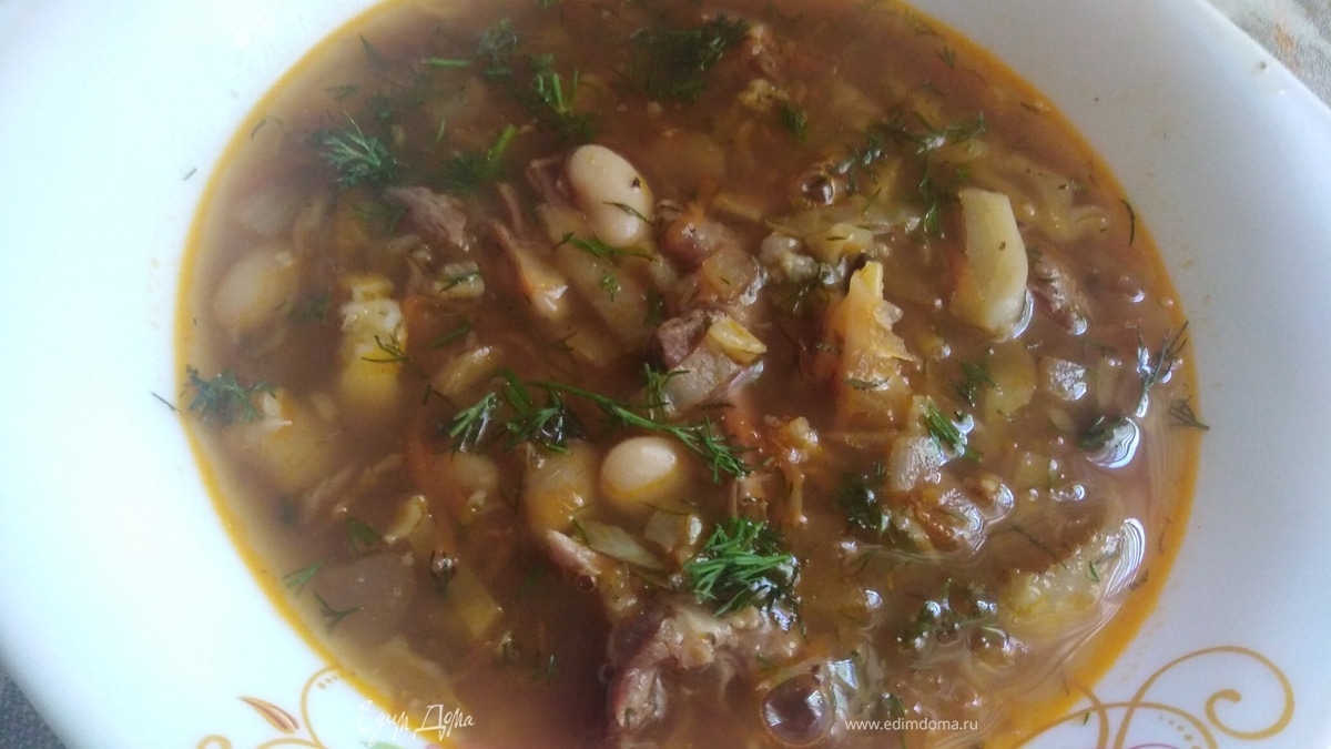 Суп по-домашнему с фасолью и сушеными грибами