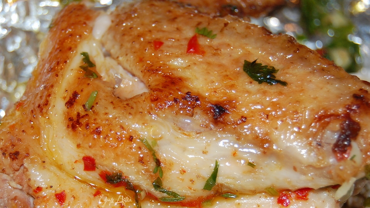 Готового цыпленка натираем соусом заворачиваем в фольгу и даем настояться 15-20мин.