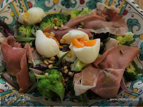 Это одна из моих вариаций салата «Цезарь». Эксперименты можно продолжить, добавив жаренные на гриле креветки или отварную куриную грудку, а вот анчоусы, если вы их не любите, можно не добавлять, но тогда обязательно посолите заправку. Для гренок подойдет любой вчерашний или подсушенный хлеб, а сыр лучше взять с ярким ароматом. Оставшиеся яичные белки можно использовать для другого салата.