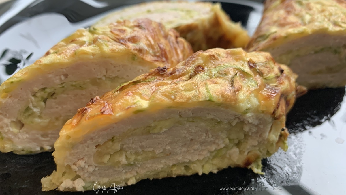 Фарш посолить, добавить сливки, хорошо вымешать. На пропеченный корж выкладываем фарш, сворачиваем в рулет и запекаем 30 минут. Первые 15 минут рулет прикрываем ковриком/бумагой. - Шаг 4