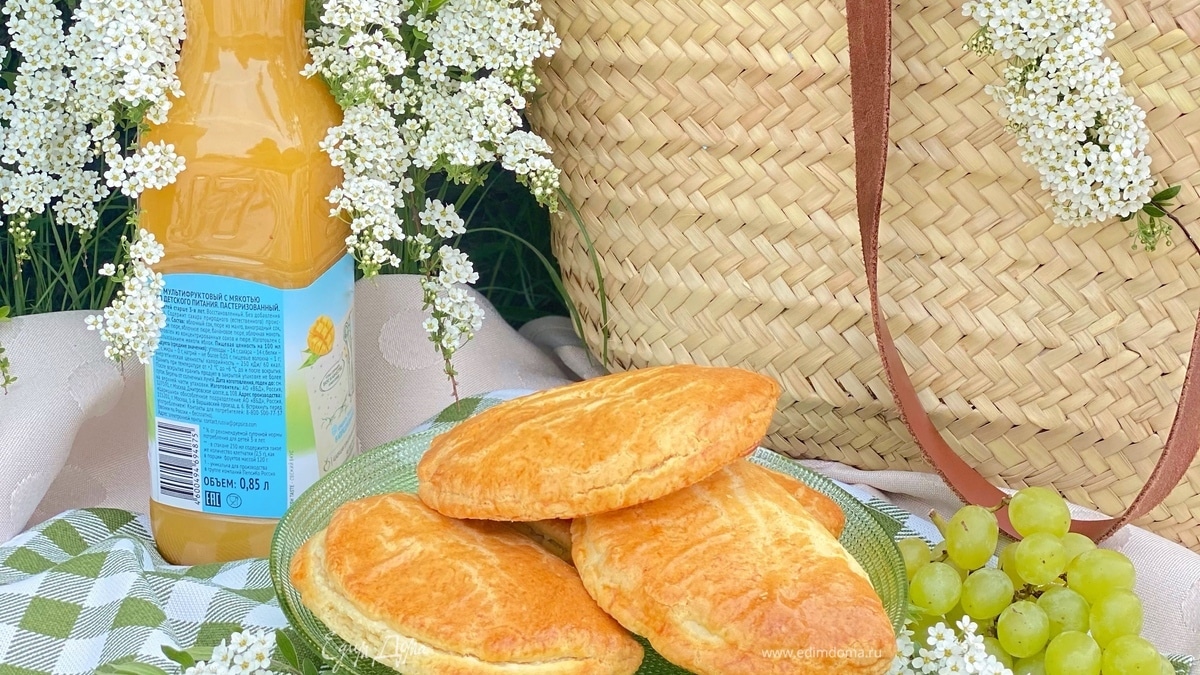 Разделить тесто на 10 частей, каждую раскатать в лепешку, на одну половину лепешки выложить начинку, так проделать с остальными. - Шаг 5