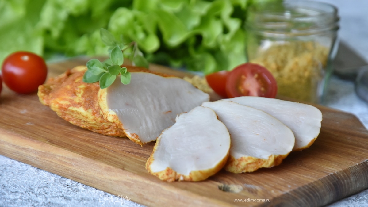 На фото автора рецепта по структуре похоже на ветчину, у меня получилось совсем по-другому. Вкус интересный, хотя вообще продукт на любителя. В качестве приправ использовала копчёную паприку и карри.