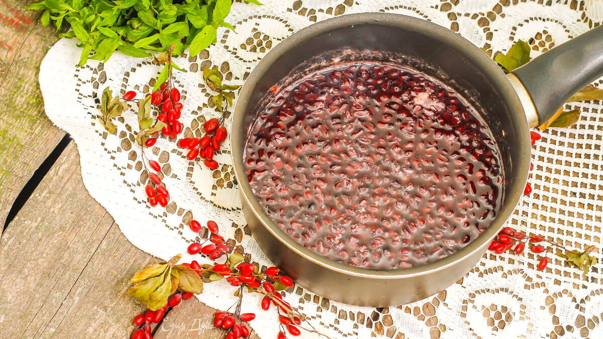 Сок, который не пригодился, можно выпить в чистом виде, добавить его в чай или сварить кисель. - Шаг 3Влейте сахарный сироп к барбарису, еще раз все перемешайте и оставьте ягоды настаиваться 4–5 часов. Затем начните варить варенье. Делайте это на среднем огне до получения густой консистенции. А после убавьте газ до минимума, высыпьте в кастрюлю оставшиеся 500 г сахара и поварите еще 10–15 минут.