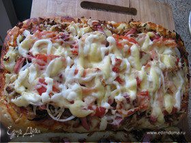 Выпекать в заранее разогретой до 190°C духовке (режим «верх/низ») до румяной корочки примерно 35–40 минут. По готовности дать немного остыть, и можно подавать. Приятного аппетита!
