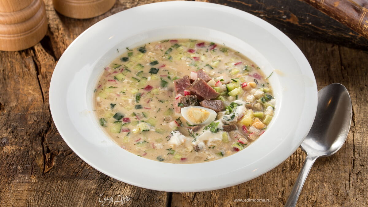 Классическая окрошка с редиской и мясом