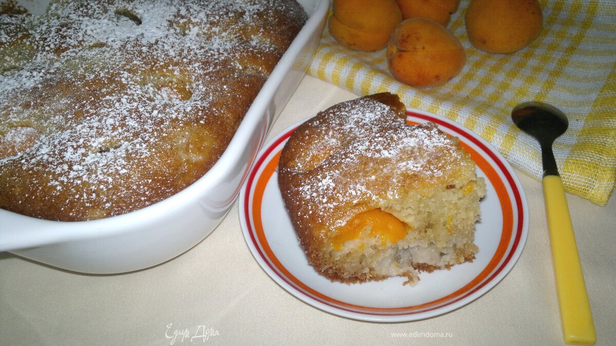 Быстрый в приготовлении, пышный и мягкий пирог с солнечными абрикосами и сладкими сливами. Очень вкусно на завтрак с молоком, компотом, травяным чаем.