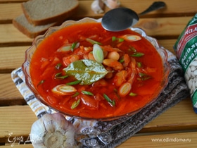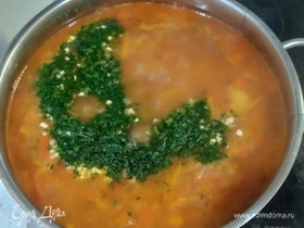 Авторский рецепт Ю. Высоцкой. Когда-то я повторяла его, и мне понравилось. В щи добавила от себя морковь, зеленый лук заменила на репчатый. Оригинал можно посмотреть здесь.