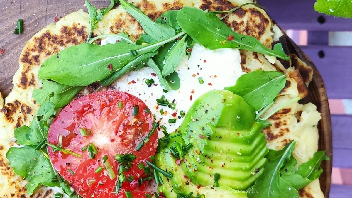 - Шаг 3Сверху я намазала их сливочным сыром, положила вкусный помидор, авокадо, руколу, посыпала солью, специями и зеленым луком. Всем приятного аппетита!