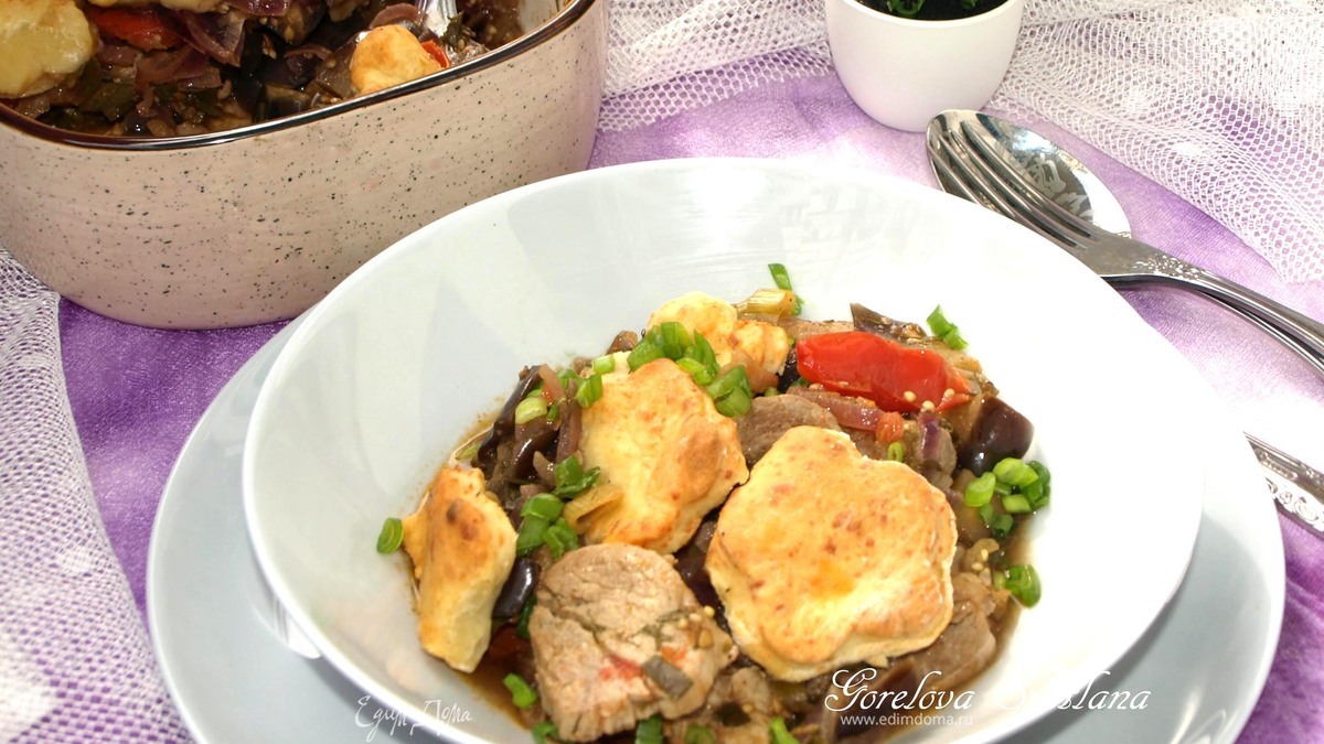 Телятина с баклажанами и сырными сконами