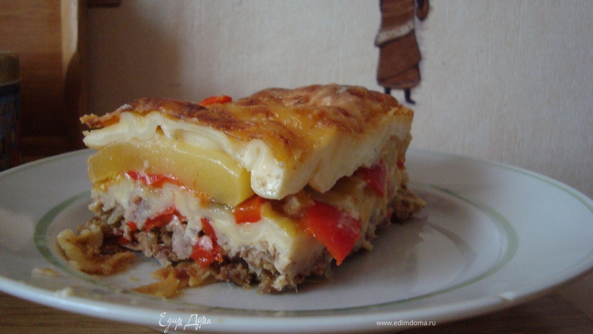 - Шаг 1Обжарить фарш с луком и приправами,остудить. Цукини почистить ,разрезать поперек и вдоль и каждую часть вдоль на длинные ломтики,слегка обжарить.Перец порезать на квадратики и обжарить до мягкости. Сделать соус :отдельно подогреть молоко,обжарить слегка сливочное масло и муку,постепенно добавлять молоко до необходимой консистенции.Посолить,поперчить.Я обычно делаю довольно жидкий.Трем сыр. Приступаем к сборке, форму обкладываем фольгой,кладем листы лазаньи и выкладываем фарш,чучуть поливаем соусом и посыпаем третью тертого сыра. Затем покрываем листами лазаньи и выкладываемцукини с перчиом.Сверху накрываем листами лазаньи,выливаем соус и посыпаем тертым сыром. Ставим в духовку разогретую до 180 градусов.Готовится примерно час.