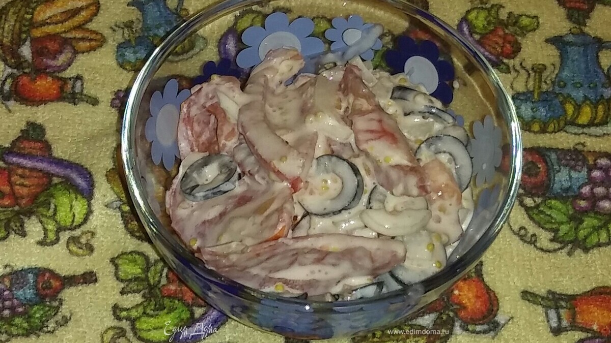 Добавляем заправку к овощам, солим. Перемешиваем. Ставим блюдо в холодильник на 20 минут. Прятного аппетита!