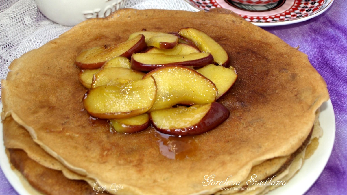 Выкладываем яблоки на блины, поливаем образовавшимся соусом. - Шаг 7