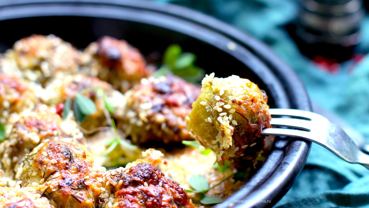 Разогреть сковороду на среднем огне. Обжарить фрикадельки на оливковом масле до румяной корочки (не до готовности). Выложить их в форму для запекания.