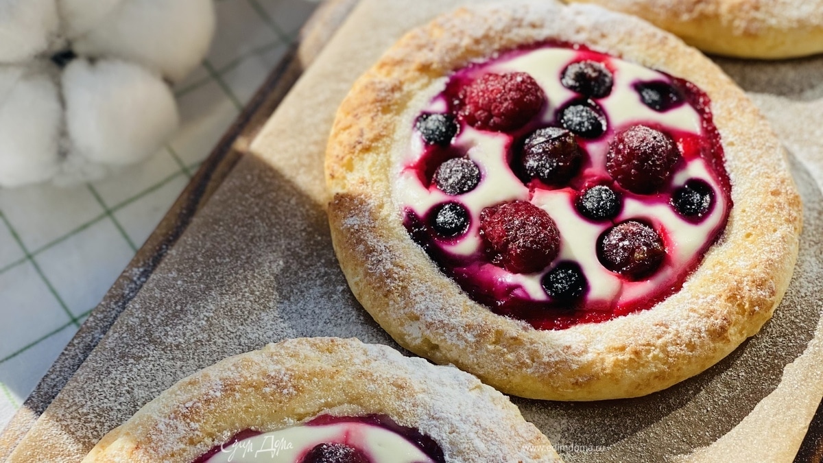 Достать полуготовые ватрушки, выложить творожную начинку и ягоды. Выпекать еще 15 мин при температуре 190–200°C. - Шаг 4