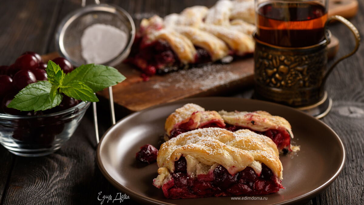 Пирог в форме косички с вишневым вареньем готовится легко и просто, если вы воспользуетесь магазинным слоеным тестом. В начинку можно добавить лимонную цедру, которая придаст вишне тонкий аромат и пикантный вкус. Пирог получается эффектным и праздничным. Внутри он нежный и сочный, а снаружи — хрустящий!