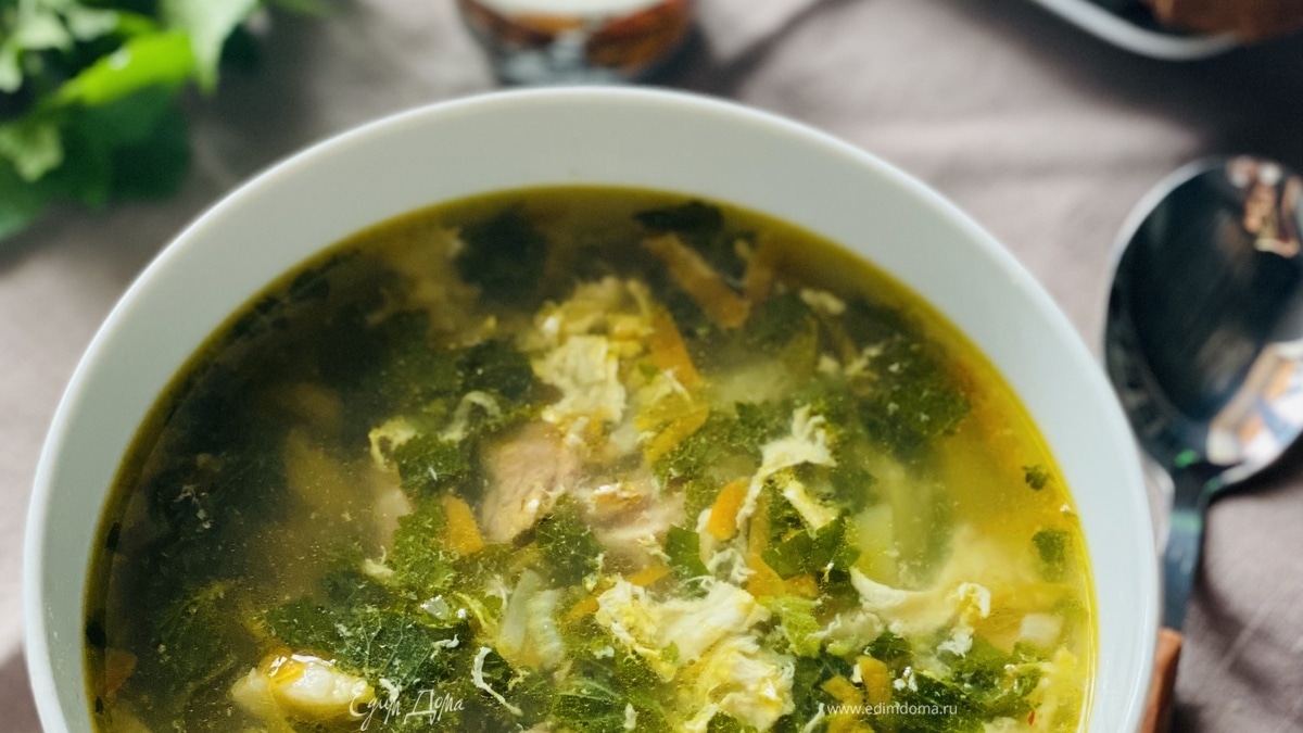 Суп из крапивы с мясом и яйцом
