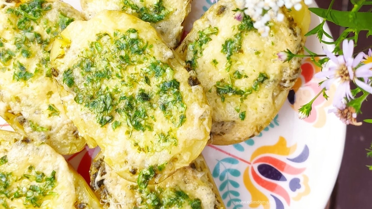 Запеченный картофель с базиликом и сыром