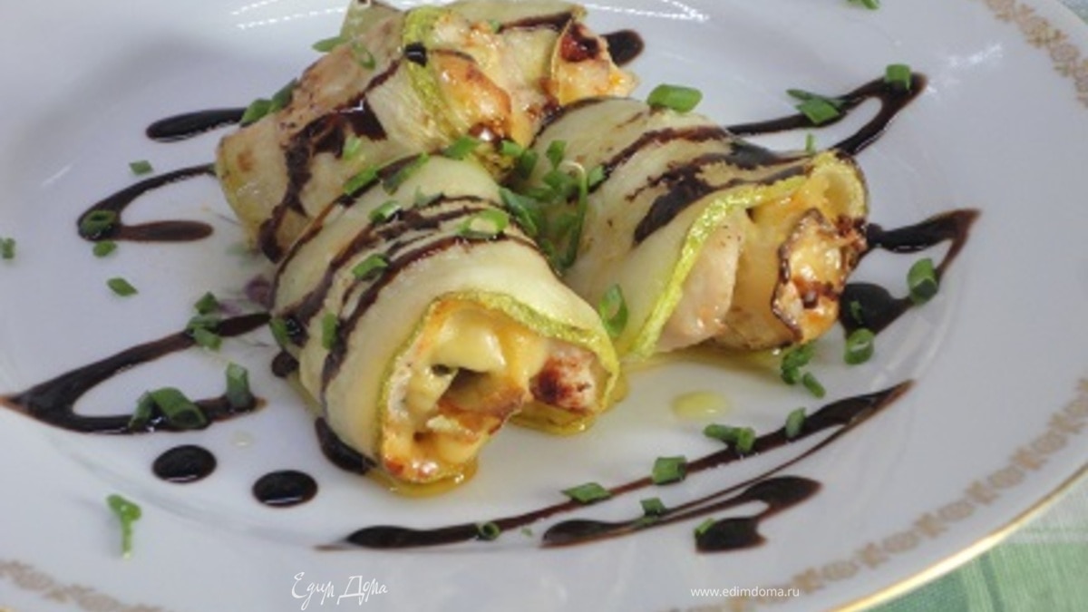 На полоску кабачка выкладываем полоску индейки и посыпаем сыром. - Шаг 4