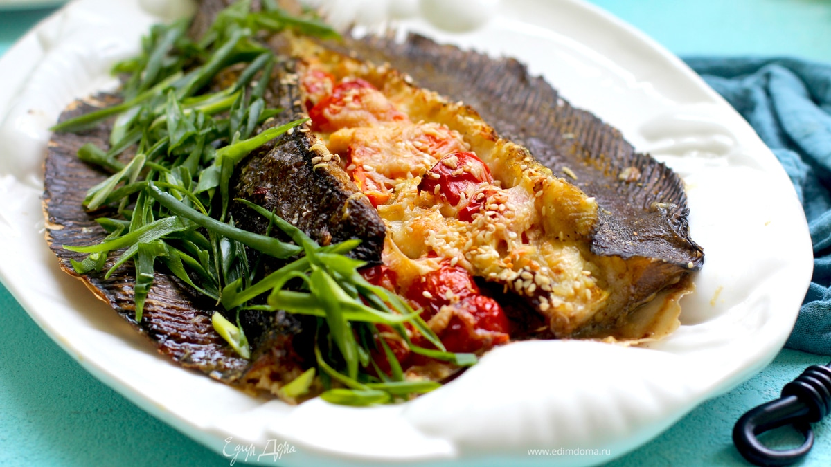 Крупную жирную камбалу лучше не жарить, а запекать. Нафаршируйте ее слегка овощами, смешайте с кусочком тертого сыра для удержания начинки, и вкусный