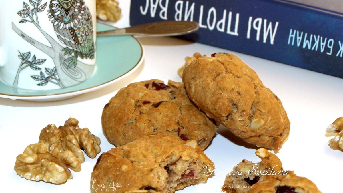 Полбяное печенье с грецкими орехами и клюквой