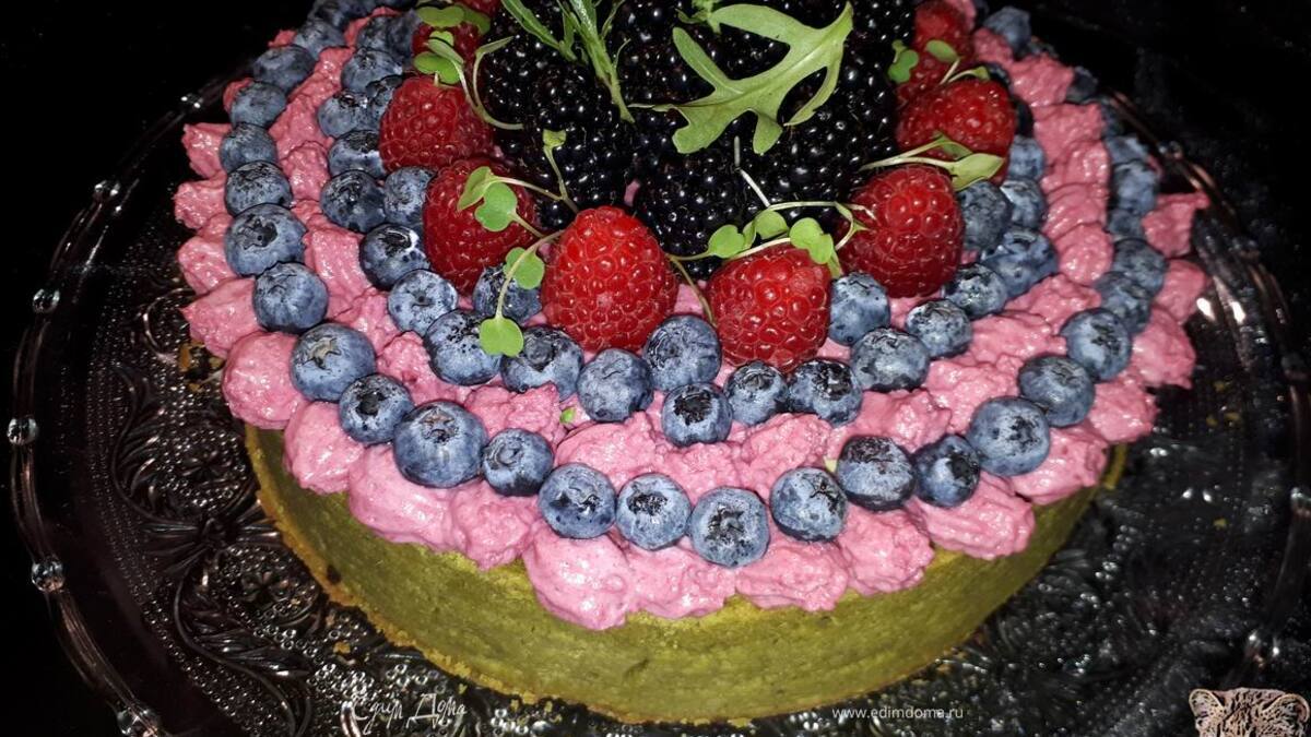 Украсьте ягодным муссом, свежими ягодами и руколой.