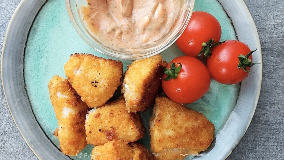 - Шаг 3Готовые наггетсы выкладываем на тарелку, застеленную бумажным полотенцем, (это надо сделать, чтобы впитался жир). Куриные наггетсы готовы. Подавать с овощами и соусом. Приятного аппетита!