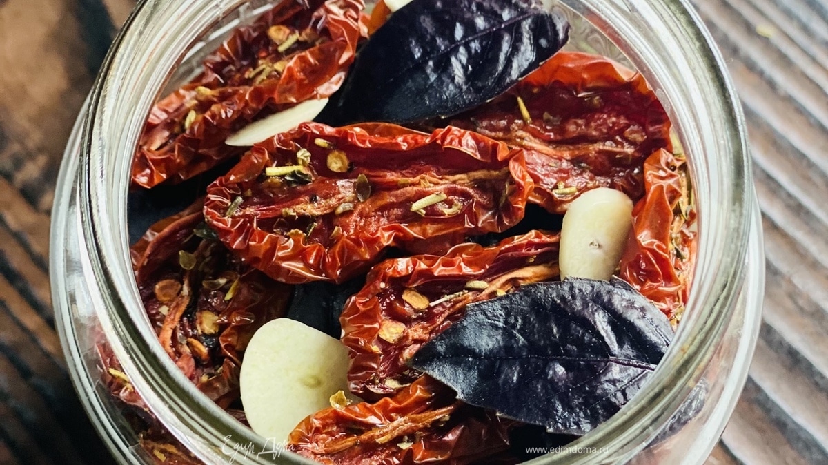 Залить помидоры горячим оливковым маслом. Как баночки остынут, убрать в холодильник.