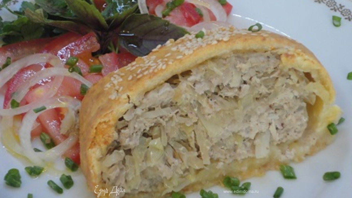 Хрустящее тесто с творогом, посыпанное маком, и сочный фарш из капусты и мяса — все, что нужно для сытного семейного обеда.