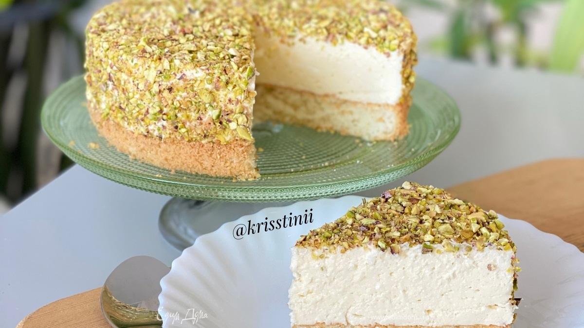 Хотите попробовать облачко на вкус?) Торт «Птичье молоко» на мой лад. Я уменьшила количество сахара, и основа у меня — тоненький бисквитный корж. И все это дополнила солоноватым ореховым вкусом фисташек.