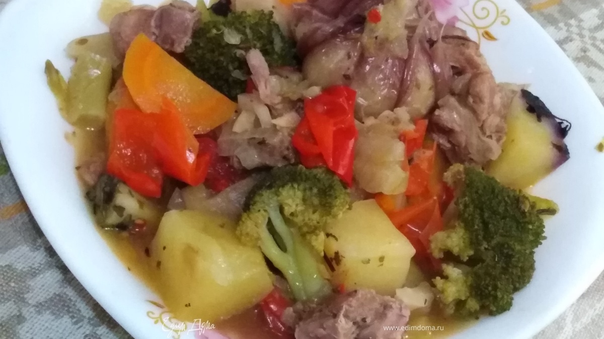 Посолить, добавить зиру, сушеную кинзу, базилик и мяту. Накрыть крышкой, убавить огонь до минимума. Тушить 1 час. - Шаг 11