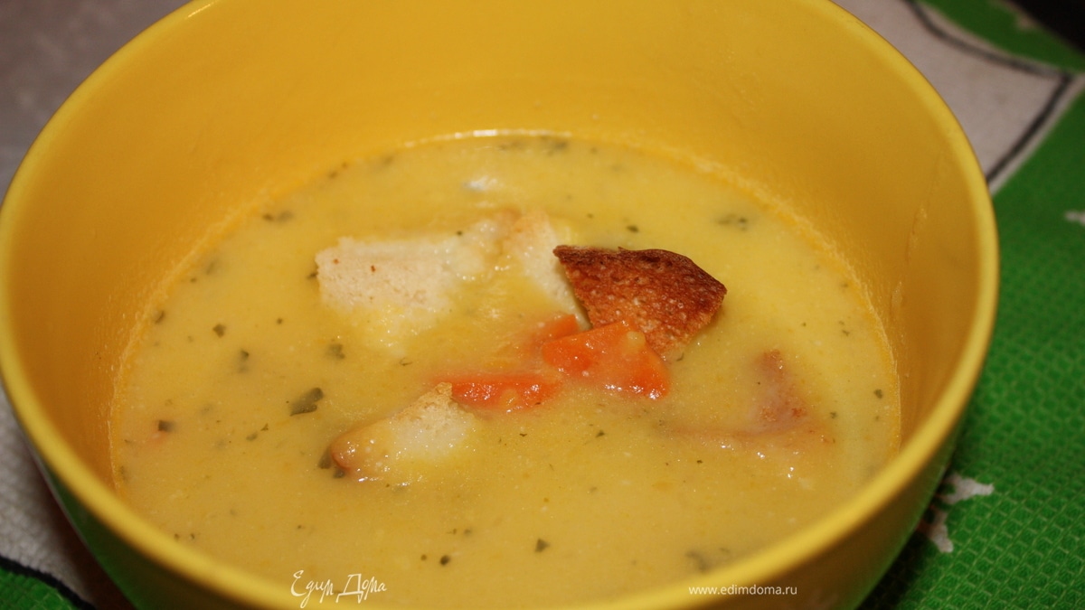 - Шаг 2В кастрюле потушить лук с чесноком и мятой на сливочном и растительном масле. Добавить картофель кубиками, тыкву. Залить бульоном. Положить целую морковь и варить до готовности овощей. Вытащить морковь и порезать полукольцами. Суп взбить блендером. Влить сливки. Посолить. Добавить морковь и не доводя до кипения выключить. Подавать с чесночными гренками. Приятного аппетита!