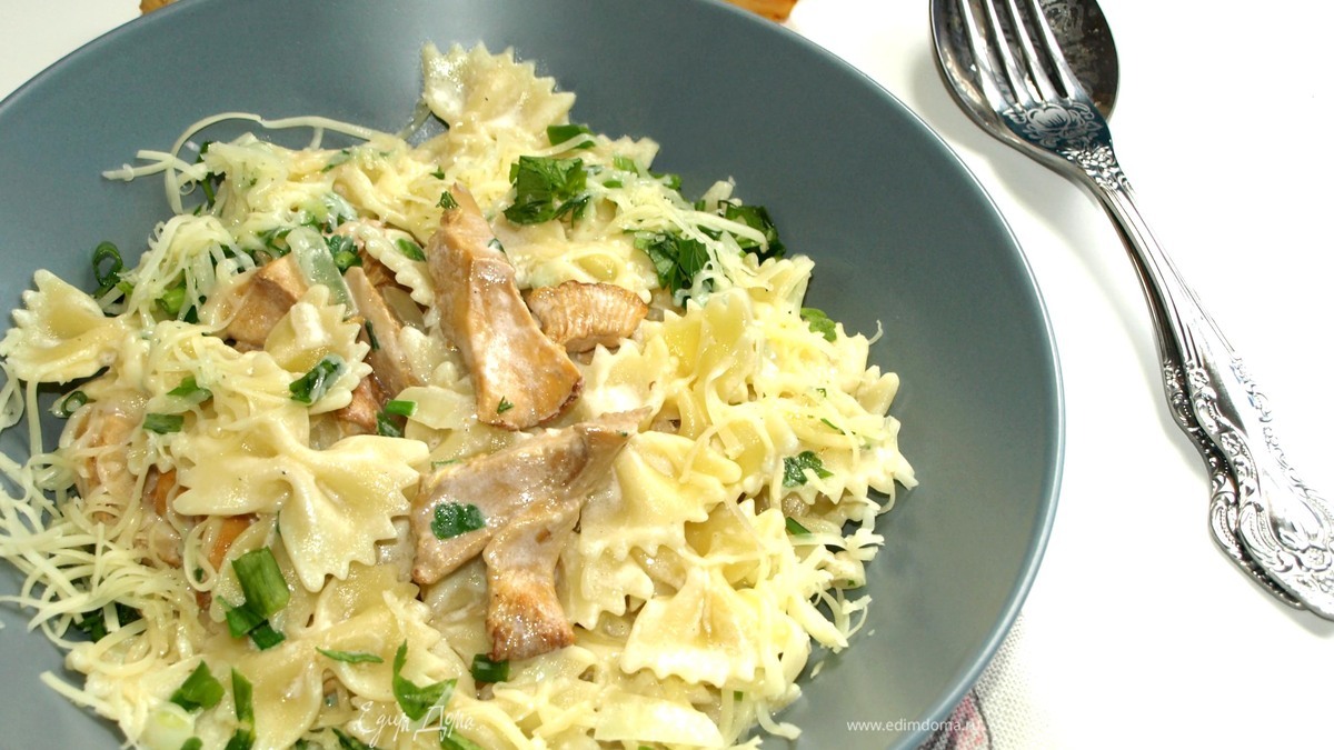 Фарфалле с лисичками в сливках