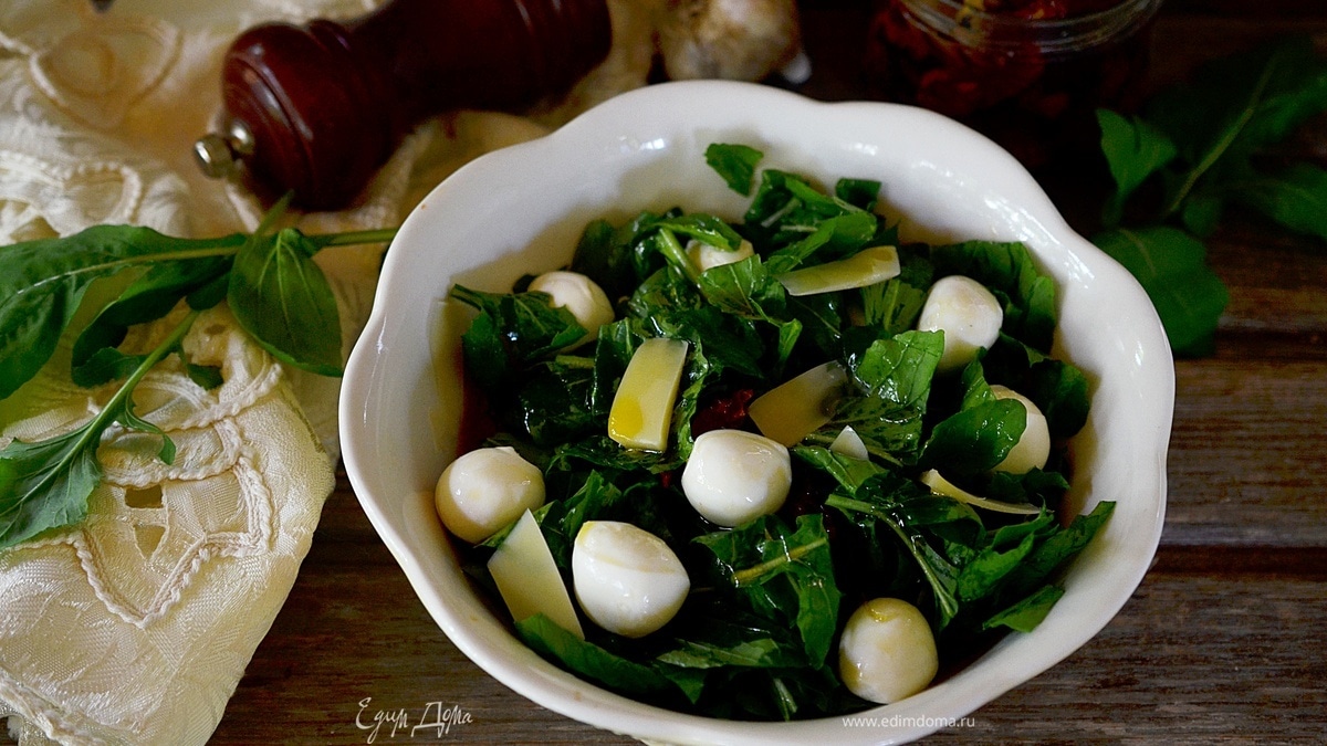 Легкий и нежный салат. Идеальное сочетание руколы и вяленых томатов. Может быть подан и как самостоятельное блюдо, и как дополнение к основному. Просто, вкусно и ароматно!