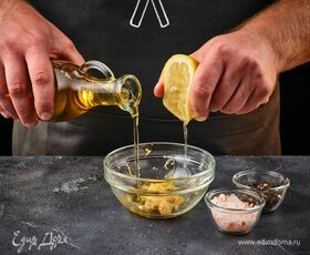 Влейте лимонный сок и оливковое масло. Посолите и поперчите. Все хорошо перемешайте.