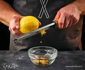 Для заправки запеченный чеснок выдавите из кожуры в отдельную миску, раздавите его вилкой в пасту, добавьте цедру лимона.