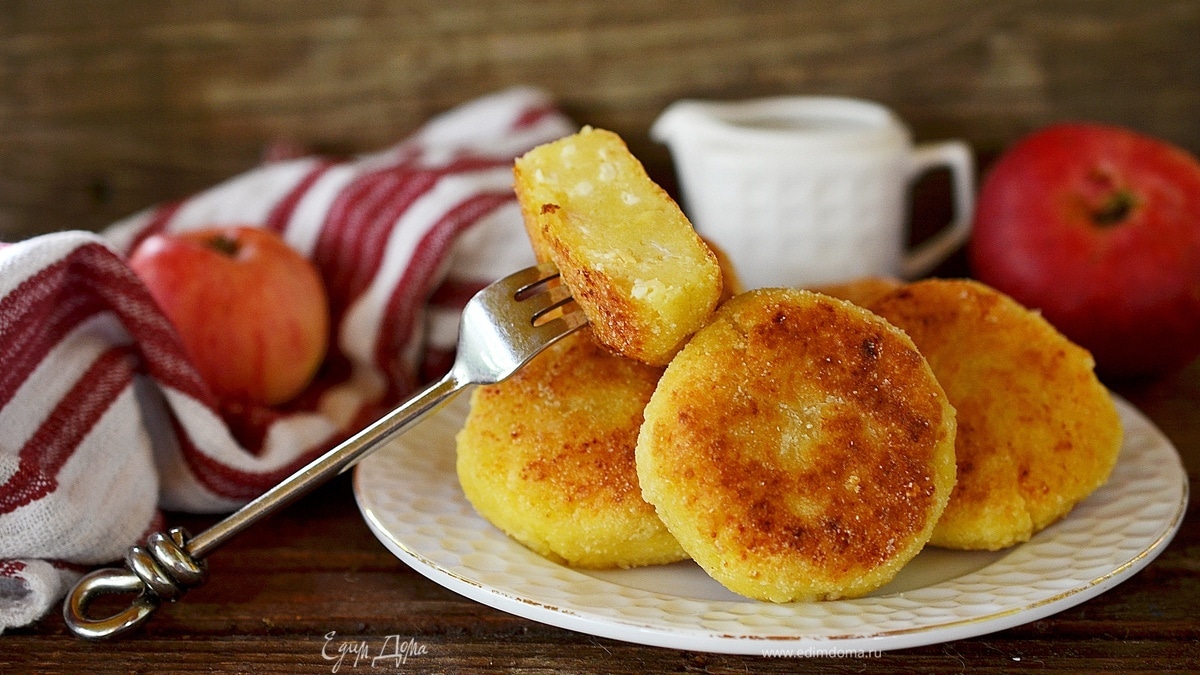 В сырники я никогда не добавляю сахар, а сегодня добавила сладкое яблочко — оно в какой-то мере компенсировало отсутствие сладости, придало готовому изделию яркий вкус и аромат. Но все-таки я рекомендую подавать такие сырники со сладким топингом или с сахарной пудрой!