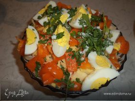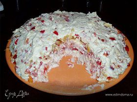 Для любителей слоеных салатов — сытное блюдо с интересной подачей.