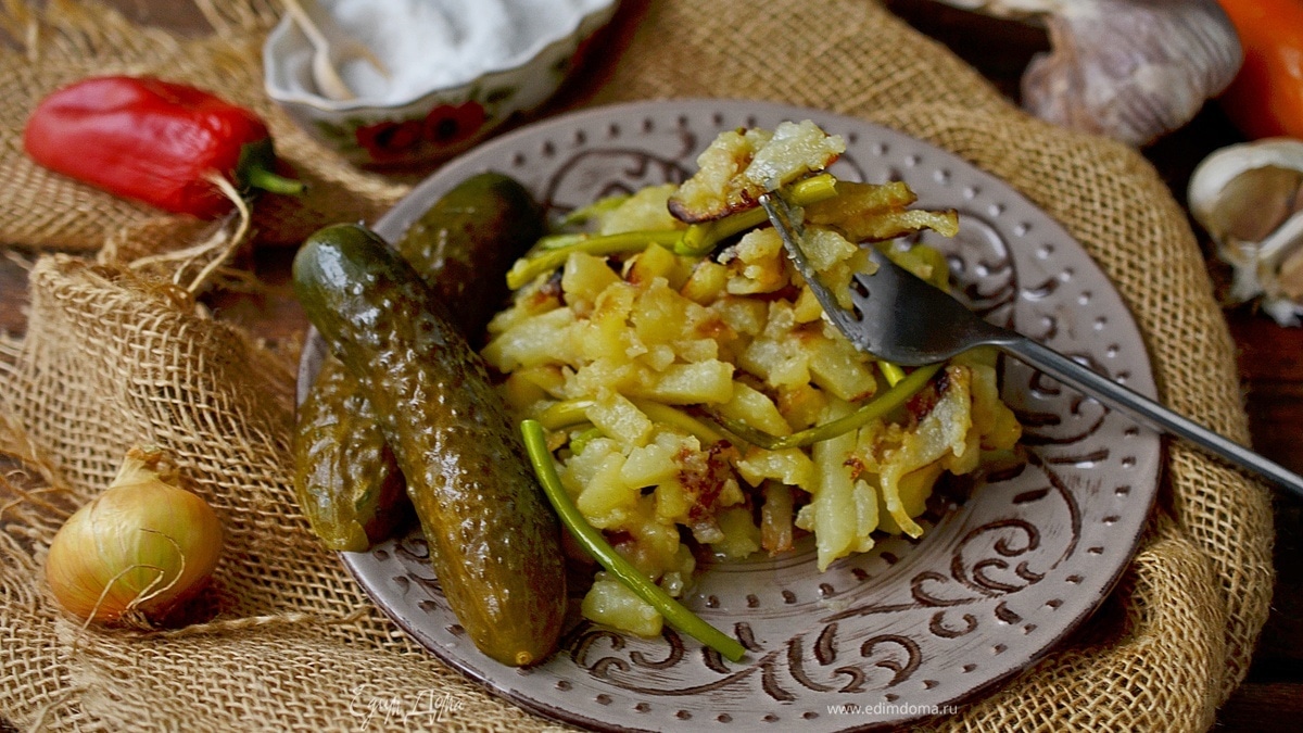 Чтобы картофель получился с золотистой корочкой, не перегружайте сковороду — он должен лежать в один слой. Жарьте на среднем огне, чтобы не подгорал, но и не тушился.