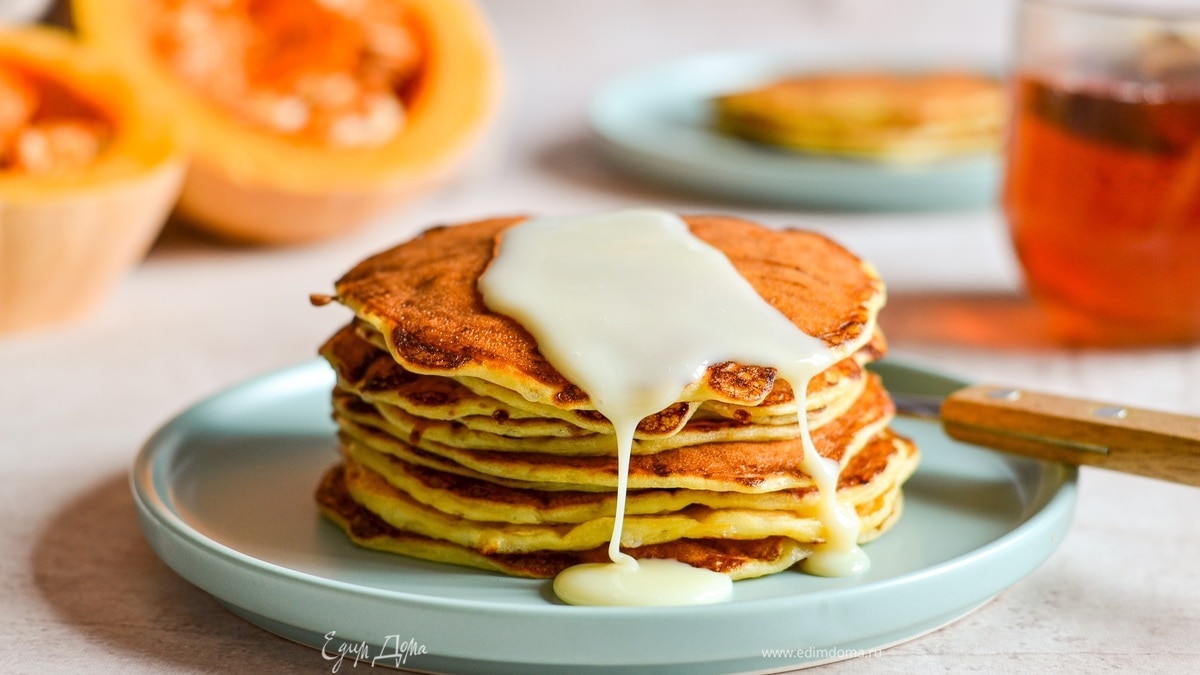 Переворачиваем и допекаем без крышки до румяности. Подаем со сгущенкой. Приятного аппетита!