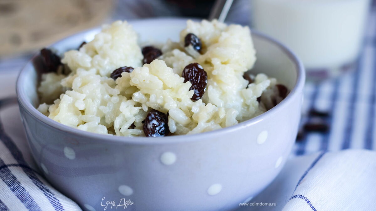 Рисовая каша, сваренная на молоке с добавлением изюма (или других сухофруктов), станет правильным началом дня, зарядит энергией и хорошим настроением.