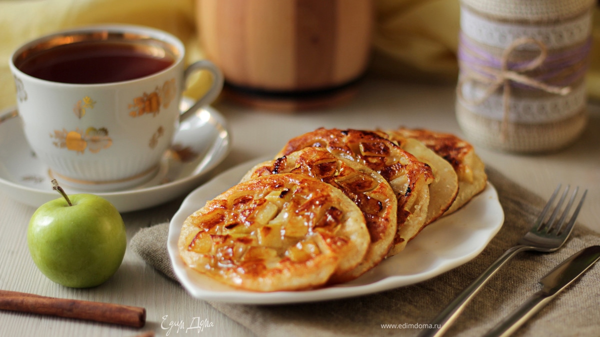 Пышные оладьи с карамельным яблочком готовятся быстро, а съедаются еще быстрее.