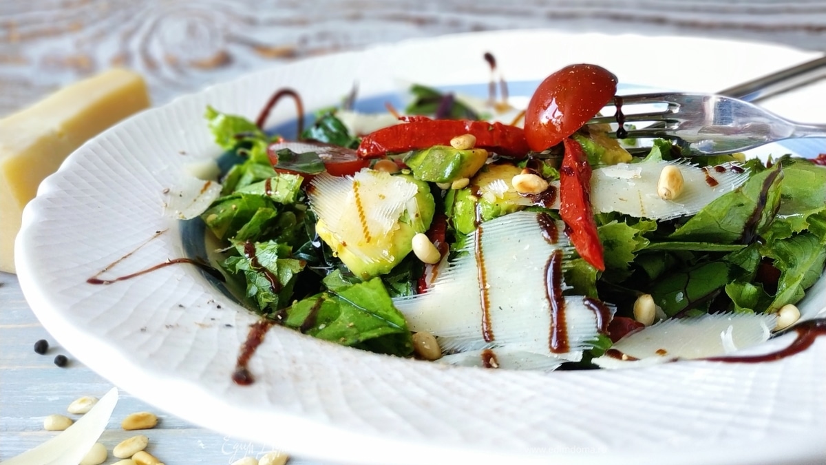 Салат с авокадо, вялеными помидорами и кедровыми орехами