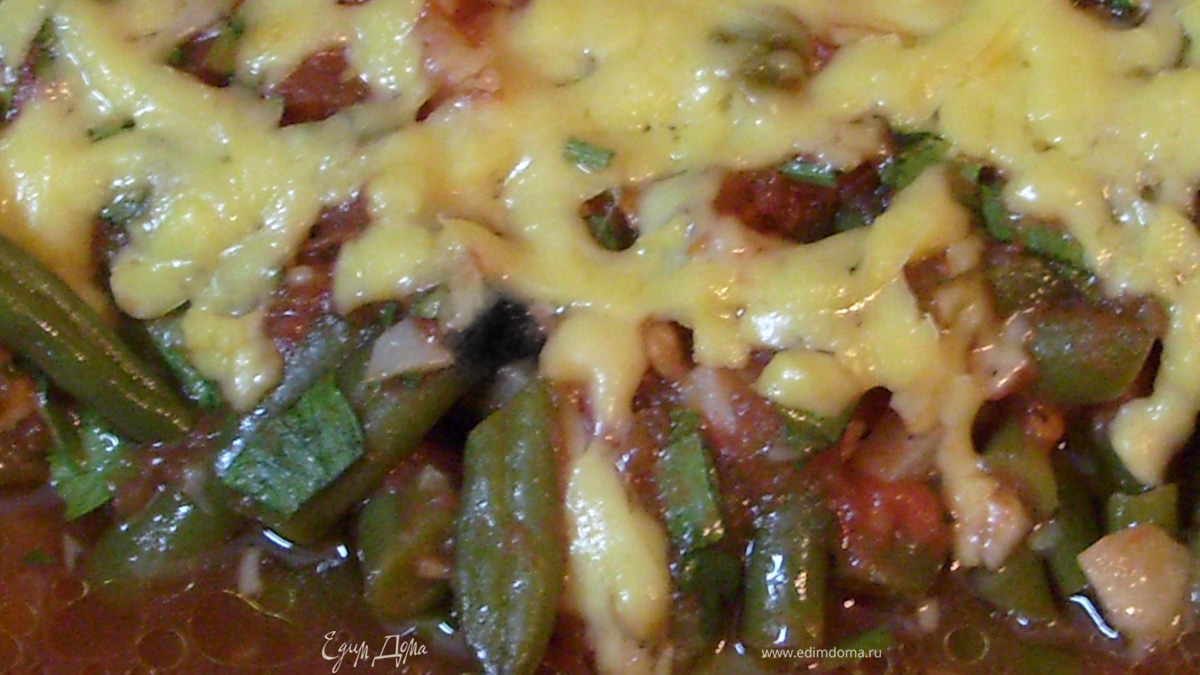 - Шаг 3Берём протвень для запекания выкладываем фасоль заливаем заливкой и посыпаем сыром и запекаем до образования корочки Приятного аппетита